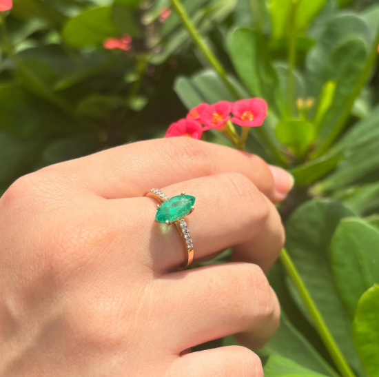 Una pieza que captura la esencia de la elegancia atemporal. Elaborado en oro 18K y adornado con una esmeralda natural colombiana, este anillo resalta por su brillo, pureza y sofisticación.