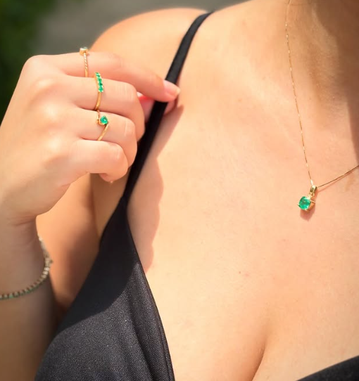 Un diseño delicado que captura la perfección de una gota. El Dije Gota Imperial resalta la belleza de la esmeralda natural en una pieza sofisticada y atemporal.